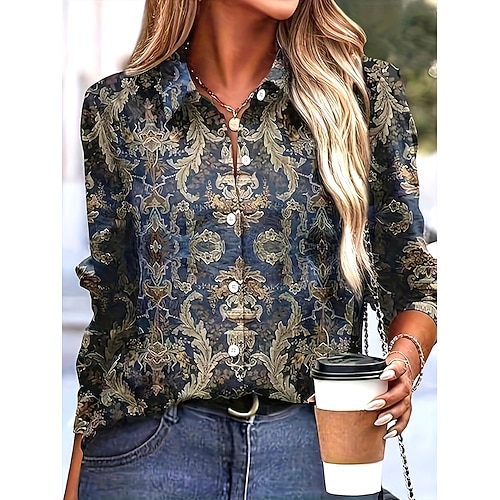 Camicia da donna Elegante Top Formale Camicia da lavoro Grafica Paisley Elegante Stile Moderno Manica Lunga Collo Top Regolari Lavoro Feste Sera Abbigliamento Quotidiano Blu Autunno Inverno Primavera