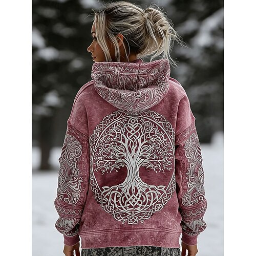Per donna Felpa con cappuccio Grafico Geometrico Tribale Casual Manica Lunga Con Cappuccio Top Regolari Casuale Abbigliamento da sera Streetwear Stampato Blu Rosa Primavera Autunno Inverno