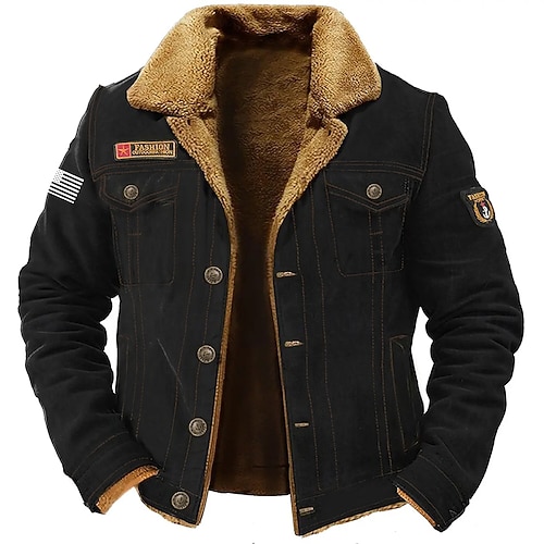 Per uomo Bandiera degli Stati Uniti Giacca in Pile Giacca Cargo Giacca Sherpa Tattico Calore Termico Vintage All'aperto Casa Casuale Ricamato Tasche Multiple Cappotti invernali Autunno Inverno Collo