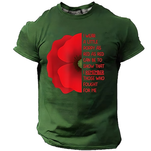 Gedenktag, Remembrance Day – Ich trage ein kleines Mohnblumen-T-Shirt, so rot wie Rot nur sein kann. Patriotisches Herren-T-Shirt mit Grafik, Kurzarm, Designer-Kleidung, Größen S, M, L, XL, XXL, XXXL