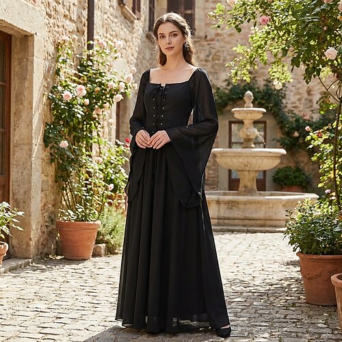 Vintage Medievale Rinascimento Lunghezza lunga Vestito Fata Allacciato Linea ad A Costume Per donna Fantasia Halloween Carnevale Mascherata Fiera Rinascimentale LARP Festa a tema retrò Adulti Vestito