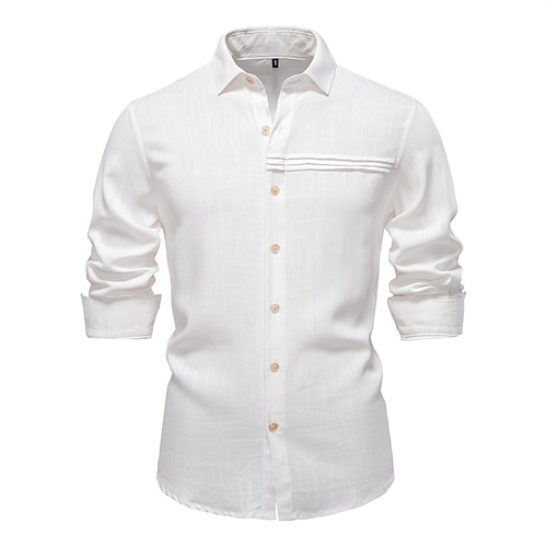 Per uomo Camicia Bianco Blu marino Kaki Manica Lunga Tinta unica Colletto Mao All'aperto Casual Arricciato Abbigliamento Quotidiano Casual Quotidiano Tempo libero