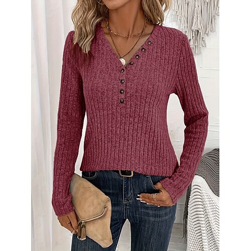 Per donna Felpa Moda Tinta unica A Coste Scollo a V Lavorato a maglia Manica Lunga Top Regolari Maglia Ferie Uscire Weekend Nero Vino Inverno