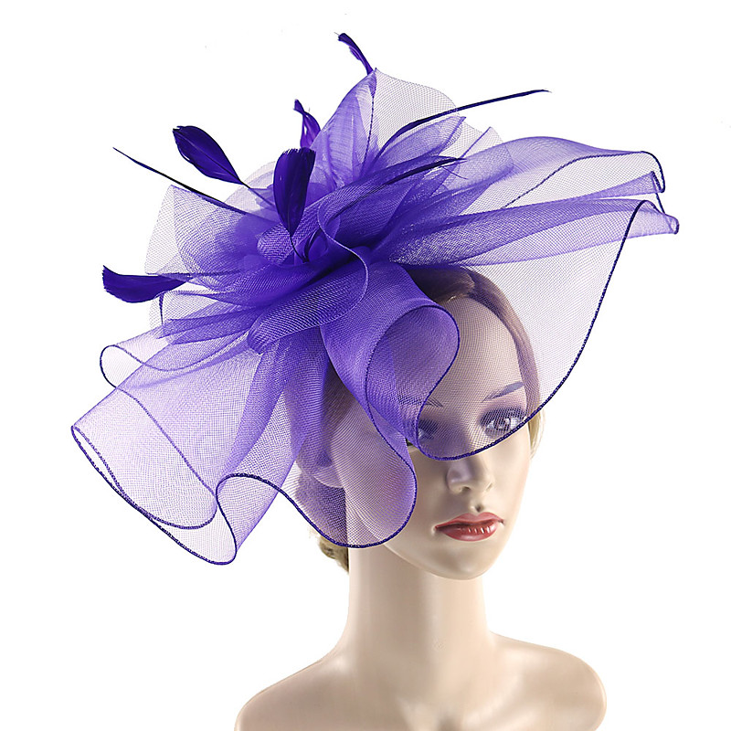 Fascinators Hats Headwear Organza Fedora Hat Top Hat Veil Hat Horse Race Cocktail Elegant Retro With Feather Pure Color Headpiece Headwear