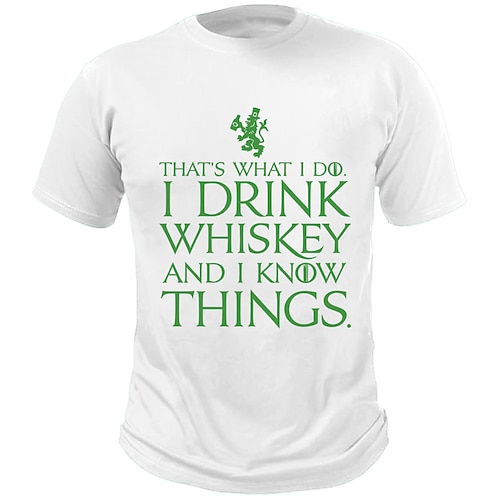 Festa di San Patrizio Per uomo Divertente Whisky Stampa lettera Maglietta 100% Cotone Manica Corta Grafico Camicia Nero Bianco Verde militare Maglietta comoda Vacanza Streetwear Abbigliamento di
