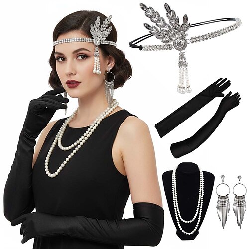 Set Retrò Vintage Anni Ruggenti Anni 1920 Fascia Flapper Copricapo Set di accessori Il grande Gatsby Ragazza Flapper Piuma Costume Per donna Natale Carnevale Natale Festa a tema retrò Danza Charleston