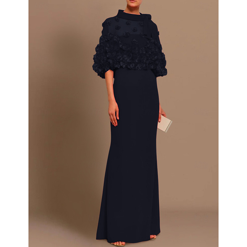 Sheath Column Floor Length Prom Dresses Evening Gown Ball Gown Formal Dress Elegant Long Sleeve Crew Neck Wedding Formal Stretch Crepe with Shawl