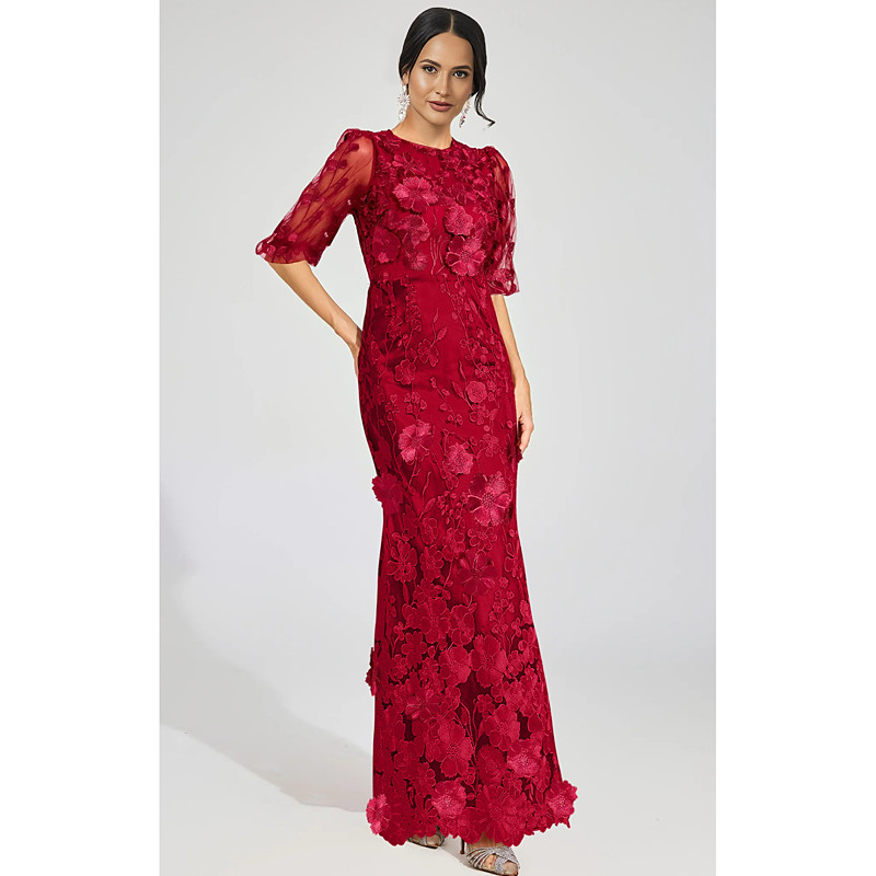 Sheath Column Floor Length Prom Dresses Evening Gown Ball Gown Formal Dress Elegant Vintage Half Sleeve Crew Neck Wedding Formal Lace with Glitter