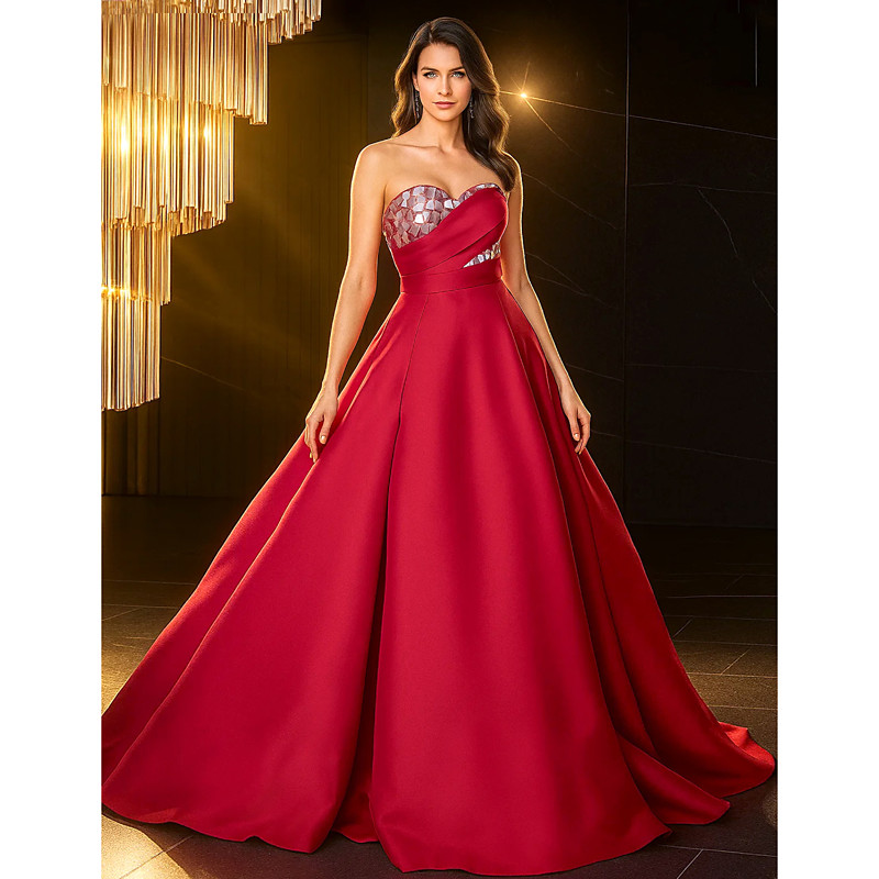 Ball Gown Sweep Brush Train Prom Dresses Evening Gown Ball Gown Formal Dress Elegant Glittering Celebrity Style Sleeveless Strapless Garden Party Wedding Stretch Satin with Pleats