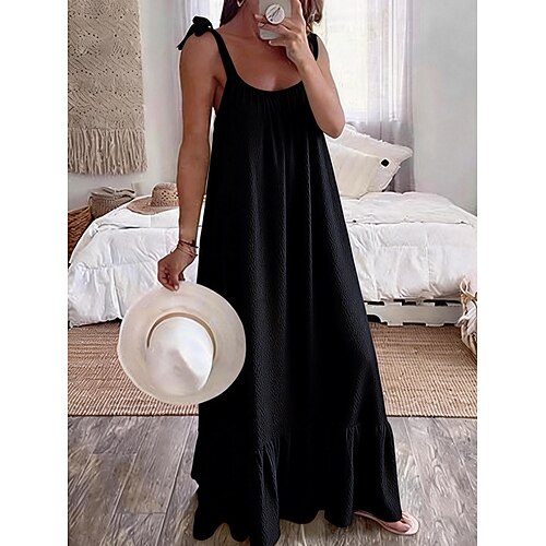 Per donna Abito lungo maxi Vestito Casual Abito a trapezio Abito Sottoveste Moda Essenziale Moderno Quotidiano Spiaggia Vacanza Vestibilità comoda Semplice Senza Maniche Spalline Blu Nero Bianco