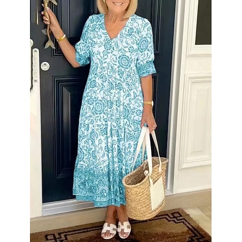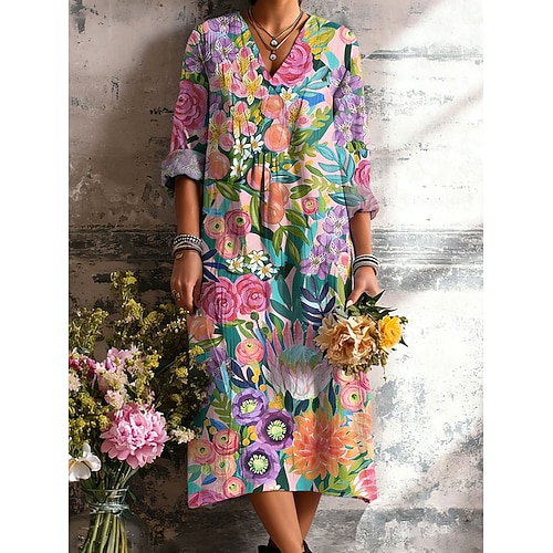 Per donna Abito maxi Abito a Tubino Vacanza Casual Spiaggia Uscire Vestibilità comoda Floreale Grafico Manica Lunga Scollo a V blu navy Rosa Beige Estate Primavera