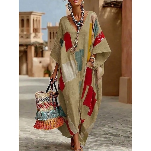 Per donna Abito lungo maxi Abito da Spiaggia Abito Estivo Moda Moderno All'aperto Spiaggia Vacanza Vestibilità comoda Semplice Manica Lunga Scollo a V Nero Marrone Verde Beige Estate Primavera