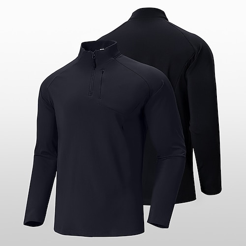 Per uomo Camicia da combattimento Maglia da escursione Camicia militare tattica Manica lunga Chiusura lampo quarto Superiore Esterno Traspirante Morbido Poliestere Collage Nero Verde militare Ruvida