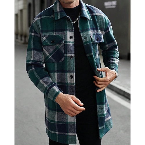 Per uomo Giacca Leggera Giacca Camicia Giacca Casual Vacanza Quotidiano Calore Termico Tasca Primavera Autunno Plaid Moda Classico Bavero Regolare Nero Vino Arancione Cachi Verde militare Giacca