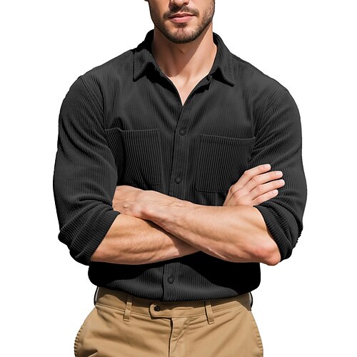 Per uomo Camicia Camicia Estiva Camicia casual Camicia di Velluto a Coste Camicia con Bottoni Nero Blu marino Cammello Verde militare Grigio Manica Lunga Semplice Bavero Vacanza Camicia hawaiana Tasca