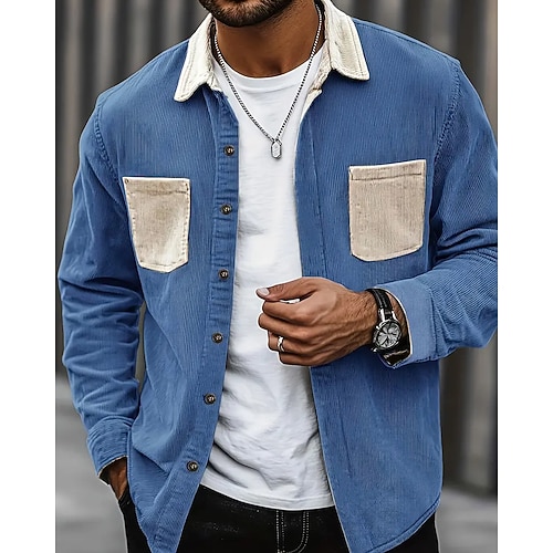 Per uomo Camicia Camicia casual Camicia di Velluto a Coste Camicia con Bottoni Blu Nero Verde militare Grigio Manica Lunga Blocco di colori Collo ripiegato Vacanza Casuale Tasche Multiple