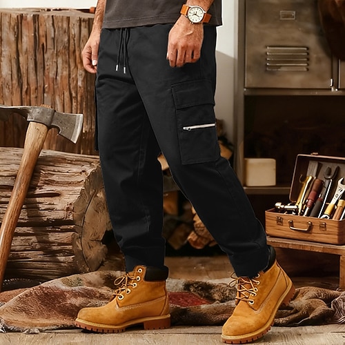Per uomo Pantaloni cargo Pantaloni A cordoncino Vita elastica Multi tasca Tinta unica Informale Giornaliero Da tutti i giorni Di tendenza Classico grigio blu Nero