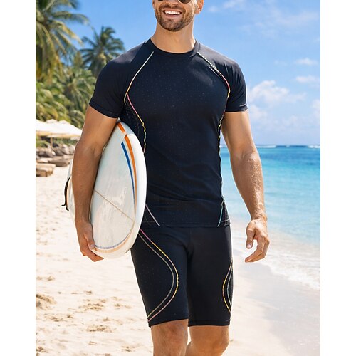 Per uomo Top sottomuta Costume da bagno 2 pezzi Tinta unita Gamba lunga fino al ginocchio Protezione UV Asciugatura Rapida Elastico Manica Corta Costume da Bagno Costume da bagno Surf Immersione