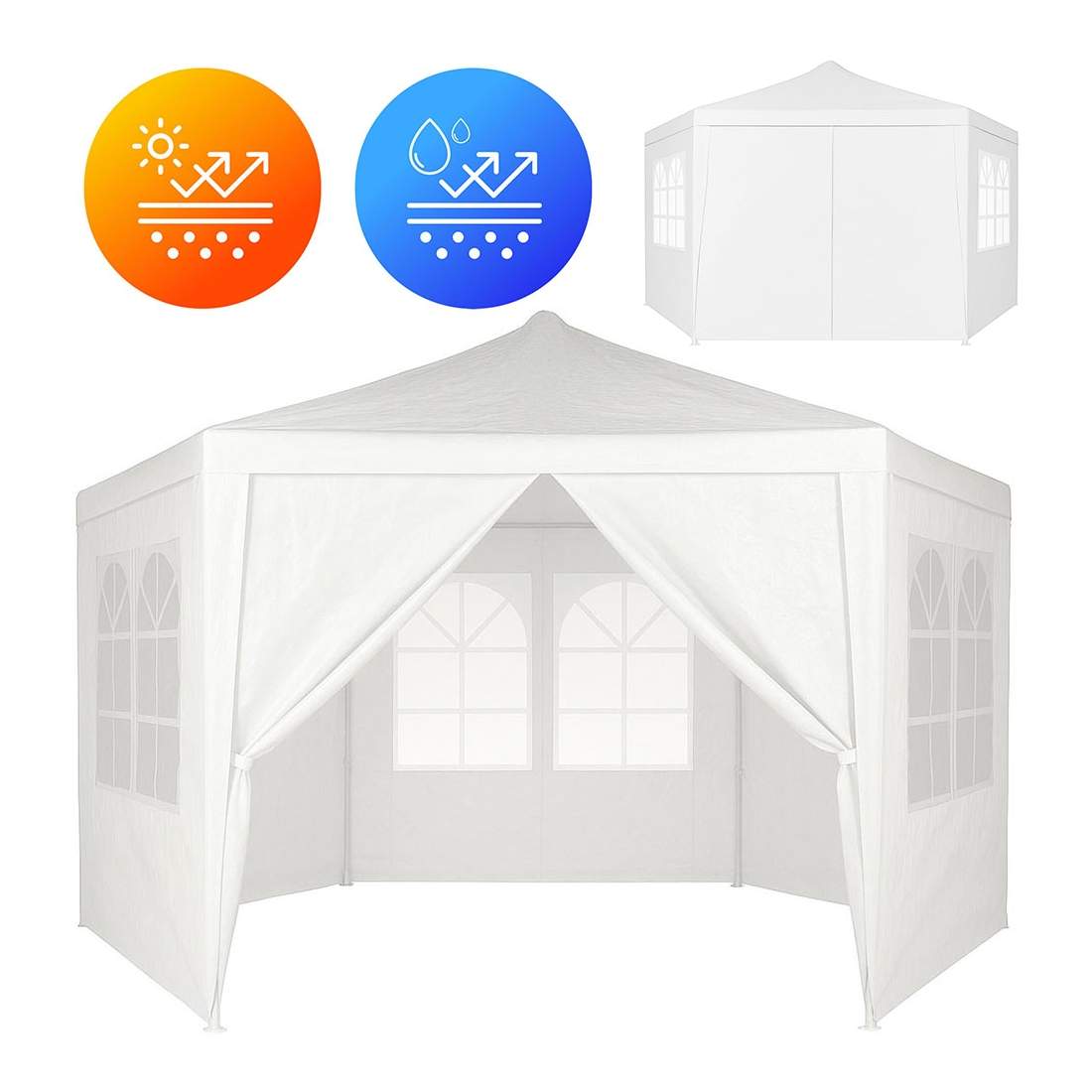 Markise m. gardin 4,5x3 m automatisk betjening blå og hvid