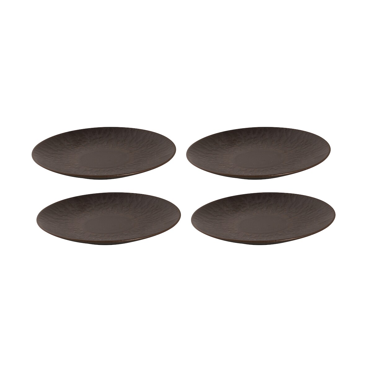 Palmer Flache Teller-Set Ruston, 4 x FrühStücksteller aus Steinzeug Ø 22 cm, Teller dunkelbraun, spülmaschinenfest - Modernes Steinzeug