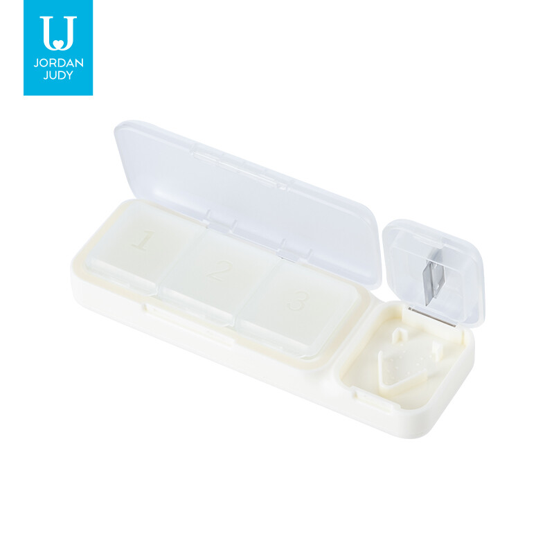 JORDAN&JUDY Boîte à Pilules Compacte Portable avec Coupe-Comprimés - Rangement Quotidien 1 pc Blanc