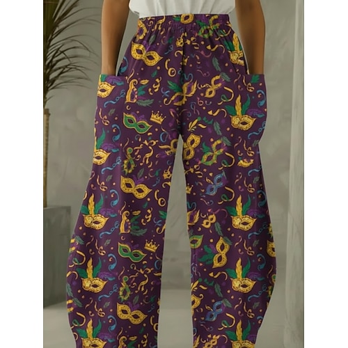 Karnevalshose für Damen, weit geschnitten, im Vintage- und Ethno-Stil, lange Hose mit hohem Bund, Grafikprint, Kordelzug, Tasche, elastischem Bund, bequem, atmungsaktiv, dehnbar, lässig, für jeden Tag