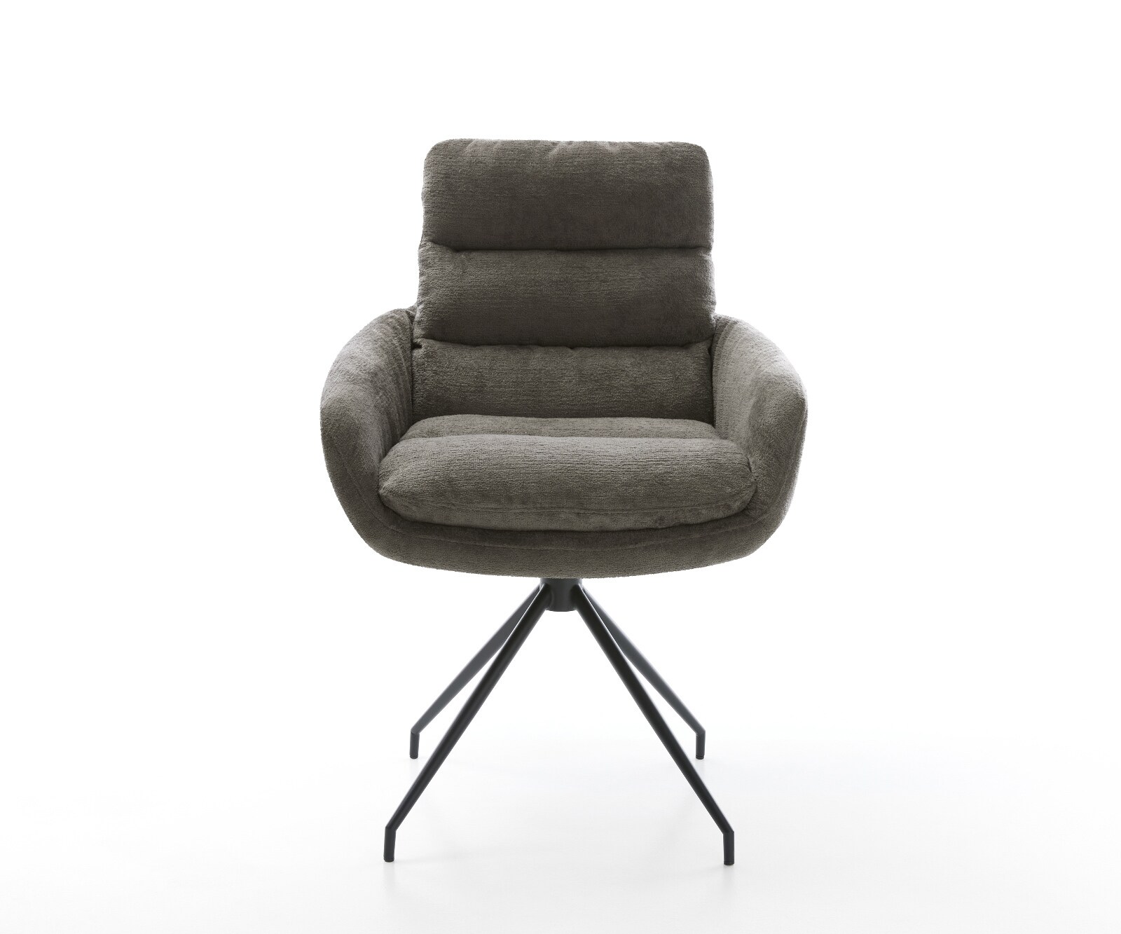 DELIFE Eetkamerstoel Abelia-Flex met armleuning bouclé zacht mud kruisframe conisch zwart