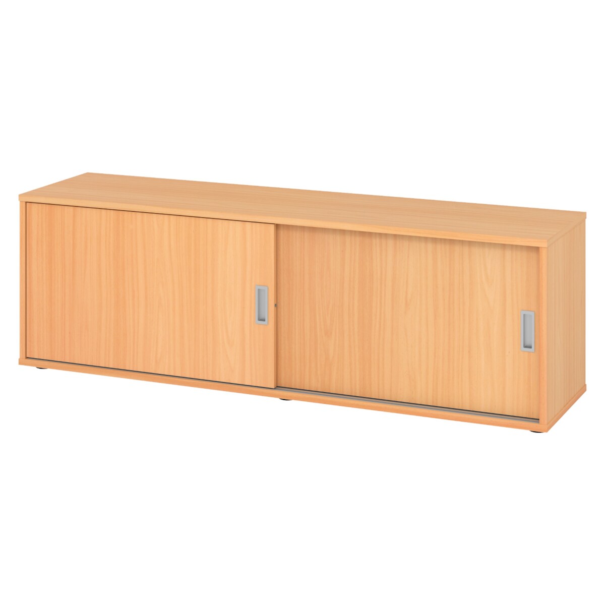 bümö Lowboard Schiebetürenschrank in Buche - Büromöbel Sideboard aus Holz, 160 cm breit, Büroschrank nur 40 cm schmal, Büro Schrank mit Schiebetüren