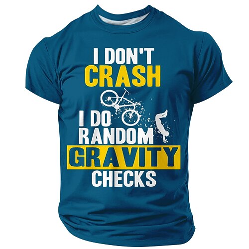 Herren-Mountainbike-T-Shirt mit dem Aufdruck „Ich stürze nicht, ich mache nur zufällige Schwerkrafttests". Lustiges, sarkastisches und humorvolles T-Shirt für Radsport und Extremsportarten. Normale