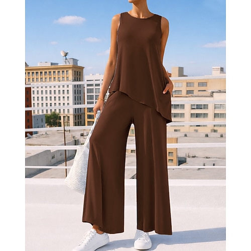 Per donna Set di tute e pullover Tuta da 2 pezzi Abiti da salotto Coulisse con tasca Tinta unita Set di Abbigliamento Sportivo Estate Primavera Marrone chiaro Nero Allenamento in Palestra Jogging