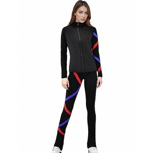 giacca da pattinaggio artistico con pantaloni, abbigliamento da pattinaggio sul ghiaccio da donna e da ragazza, nero, elastico, abbigliamento da pattinaggio per competizione, termico, caldo, con