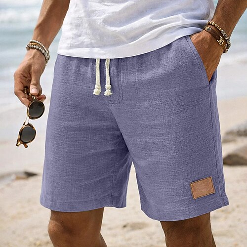 Per uomo Shorts Shorts di Lino Pantaloncini Estivi Shorts da Spiaggia Elastico in vita Coulisse Semplice Comodità Traspirante Lunghezza al ginocchio All'aperto Quotidiano Spiaggia Vacanza Moda Nero