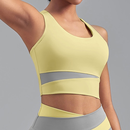 Per donna Supporto medio Canotta con imbottitura Reggiseno da corsa Snello Top reggiseno Imbottito Palestra Esercizio Corsa Leggero Elastico Traspirante Nero Bianco Giallo Patchwork