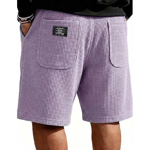 Per uomo Pantaloncini Waffle Shorts Pantaloncini casual Tasca Elastico in vita Semplice A quadri Comodità Traspirante Lunghezza al ginocchio Casuale All'aperto Vacanza Vacanza Moda Nero Bianco