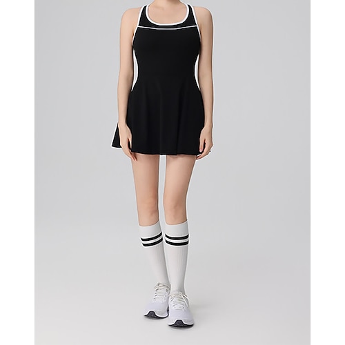 Per donna Tinta unita Abito da tennis con pantaloncini Abito sportivo Senza Maniche Patchwork Senza schiena Elastico Traspirante Tennis Badminton Esercizio all'Aperto Girocollo Vestito Nero Bianco