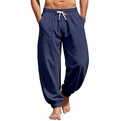 Per uomo Joggers Pantaloni di Lino Pantaloni Pantaloni Estivi Pantaloni Larghi Coulisse Elastico in vita Semplice Comodità Traspirante Lunghezza intera Casuale Quotidiano Ferie Vacanza Moda Nero