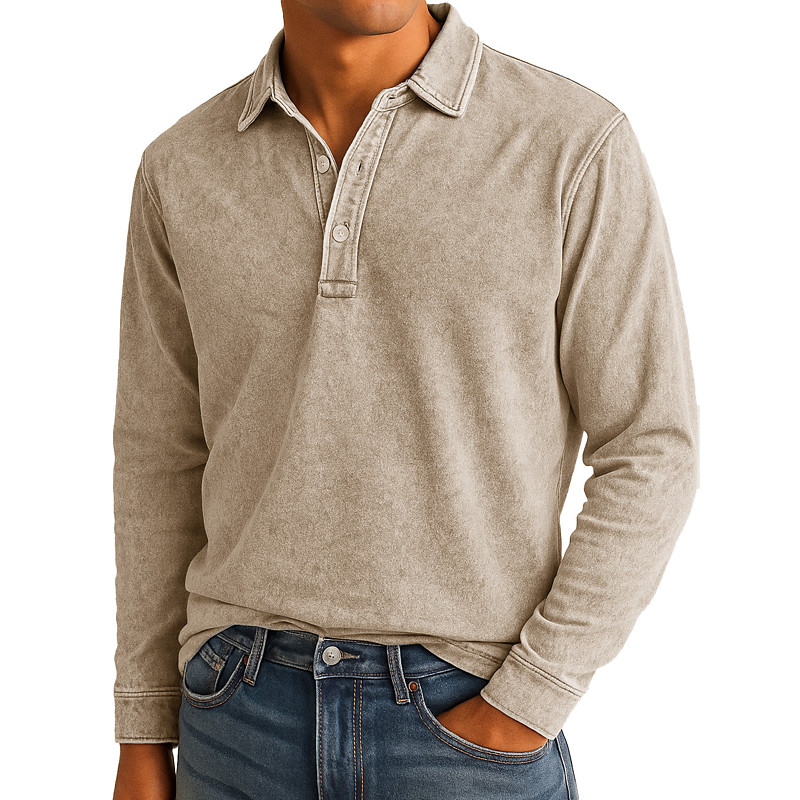 Men's Cotton Polo Shirt Golf Polos Shirts Business Casual Lapel Classic Long Sleeve Vintage Fashion Solid Color Plain Vintage Style Washed Fall Winter All Seasons Regular Fit Dark Brown Black Pink