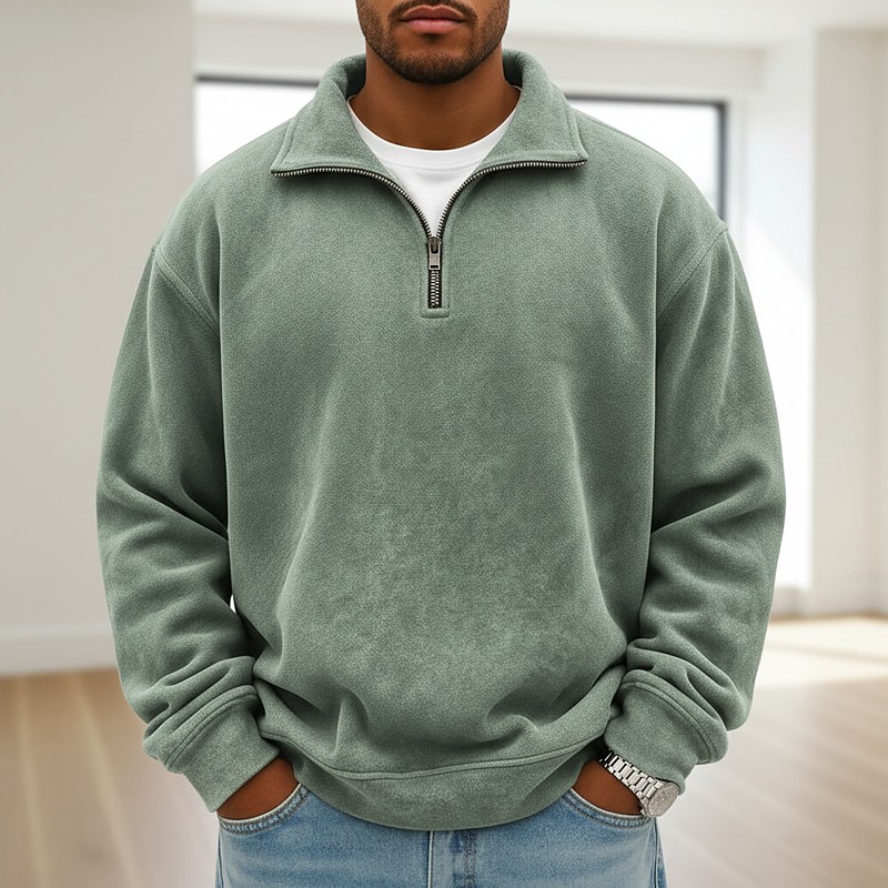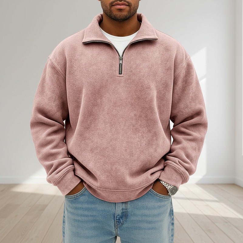 Men's Faux Suede Zip Polo Pullover Sweatshirt Vacation Street Zip Up Long Sleeve Fashion Basic Solid Color Plain Fashion Fall Spring Fall All Seasons Relaxed Fit Black Pink Army Green Navy Blue Blue