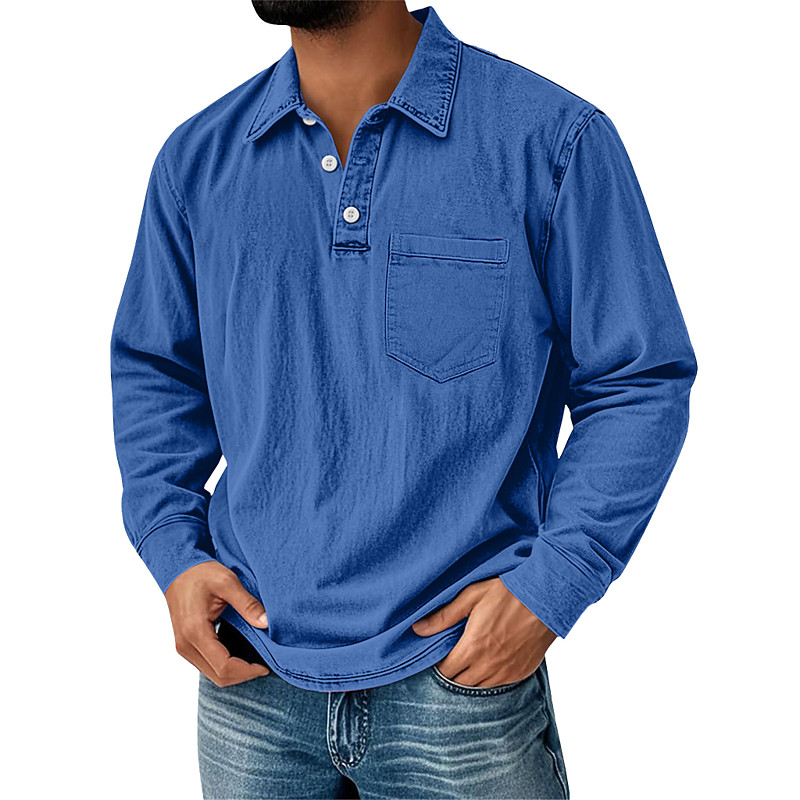 Men's Cotton Polo Shirt Casual Street Lapel Long Sleeve Comfortable Office Solid / Plain Color Buttons Plain Spring Fall Winter Regular Fit Black Pink Navy Blue Purple Brown Green Cotton Polo Shirt