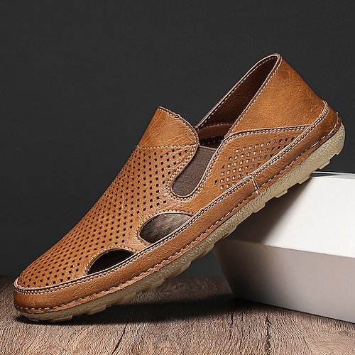 Sandali estivi da uomo in similpelle traspiranti, marroni, comodi, ideali per la spiaggia, le vacanze e il tempo libero.