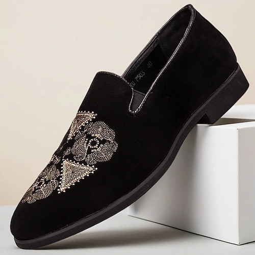 scarpe slip-on da uomo in velluto nero con dettagli ricamati: eleganti calzature casual per la sera e le occasioni speciali