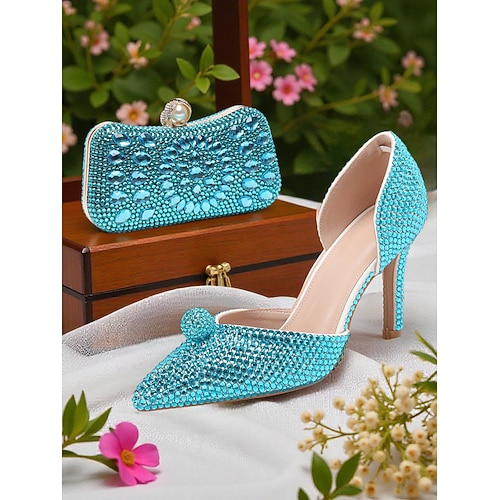 set di scarpe con tacco e pochette in strass verdi da donna - décolleté a punta con cristalli scintillanti e borsa da sera abbinata per feste, matrimoni ed eventi formali