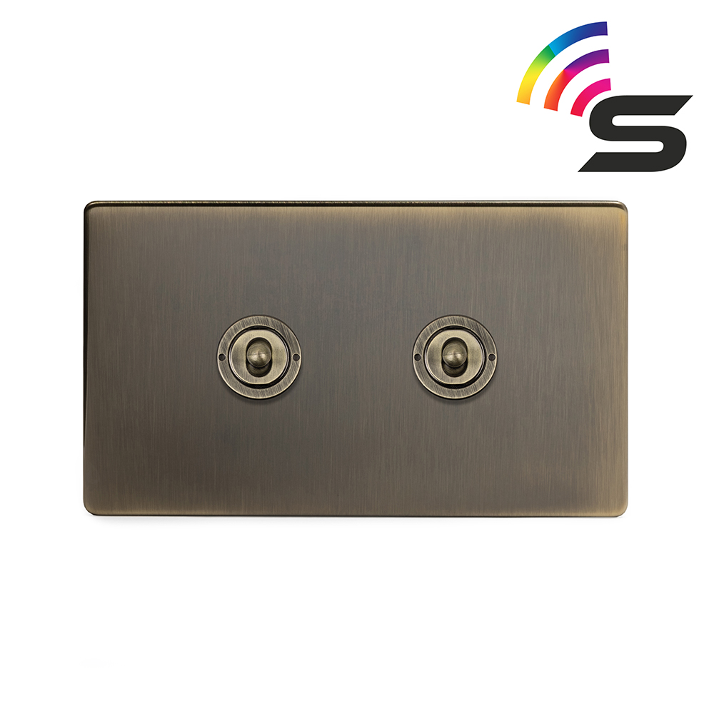 Soho Lighting Antique Brass 2 Gang 150W Zigbee Smart Toggle Switch
