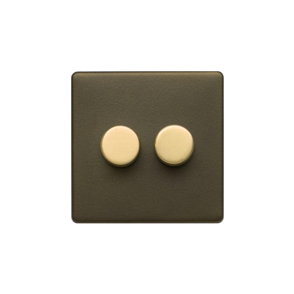 Soho Lighting Bronze & Brushed Brass 2 Gang 1000W DC1-10V Dimmer Switch