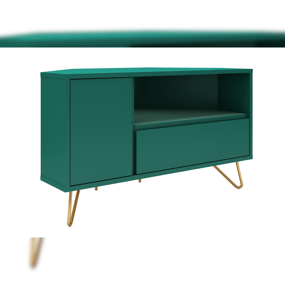 SalesFever Eck TV-Lowboard aus MDF | mit Tür, Klappfach und offenem Fach | Beine Metall mit Messinglegierung | B 100 x T 50 x H 58 cm | grün