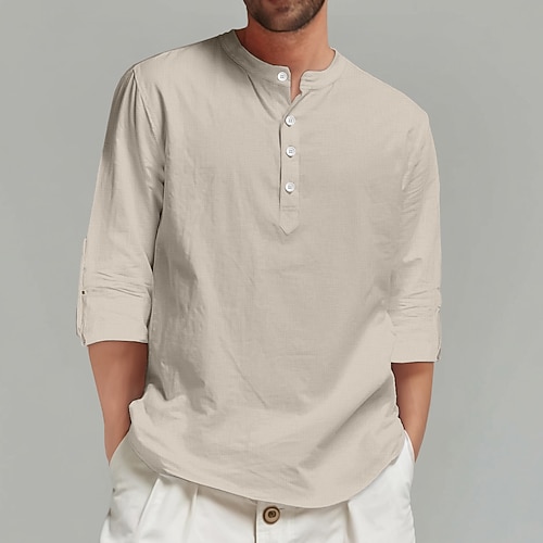 Per uomo Camicia Camicia di lino Camicia Estiva Camicia da Spiaggia Tinta unica Vacanza Casuale Nero Bianco Rosa Blu Manica Lunga Henley Abbigliamento Puro