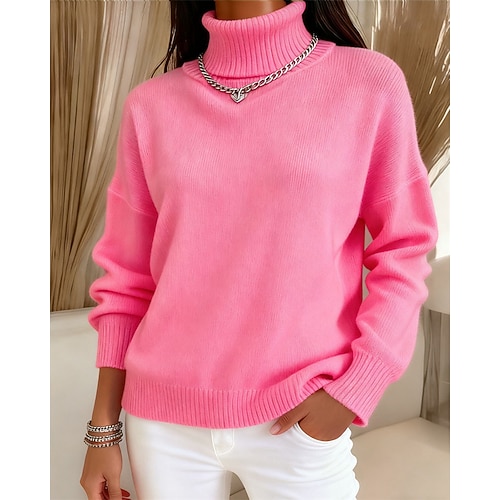 Per donna Felpa Maglione Elegante Moda Streetwear Tinta unica Dolcevita Lavorato a maglia Manica Lunga Top Regolari Maglia All'aperto Casa Lavoro Nero Bianco Autunno Inverno