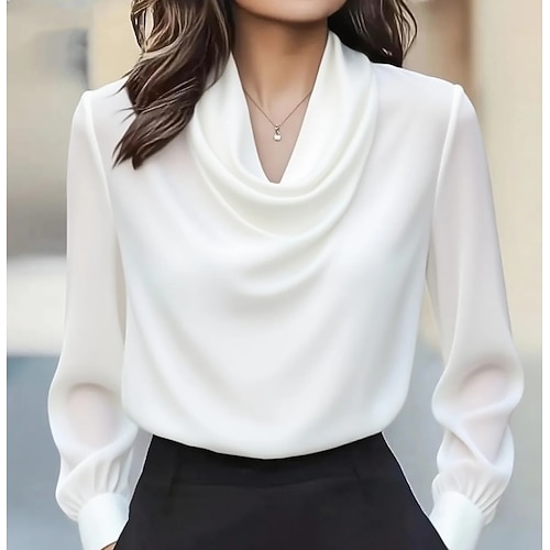 camicetta da donna in raso elegante top regalo di Natale semplice elegante quotidiano alla moda manica lunga collo a cappuccio top normali quotidiano drappeggiato nero bianco vino marrone autunno