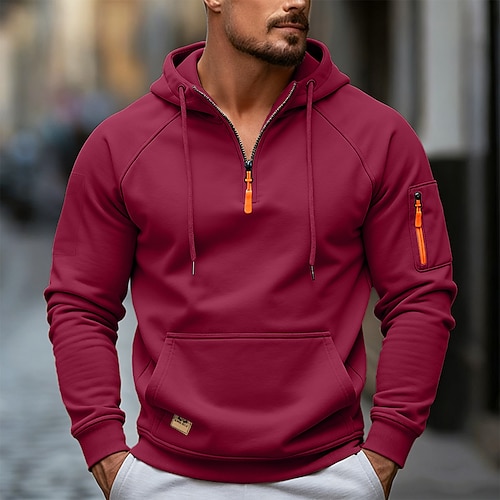 Per uomo Felpa con cappuccio Felpa con cappuccio e zip corta Vino Marrone Cachi Grigio Con Cappuccio Semplice Con zip Tasca Sport Outdoor Quotidiano Ferie senza stampa Streetwear Essenziale Casual