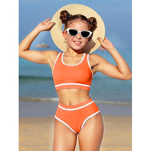 Bambini Ragazze Costume da bagno All'aperto Spiaggia Blocco di colori Vacanza Sport Moda Costumi da bagno Dai 4 anni in su Estate Blu Nero